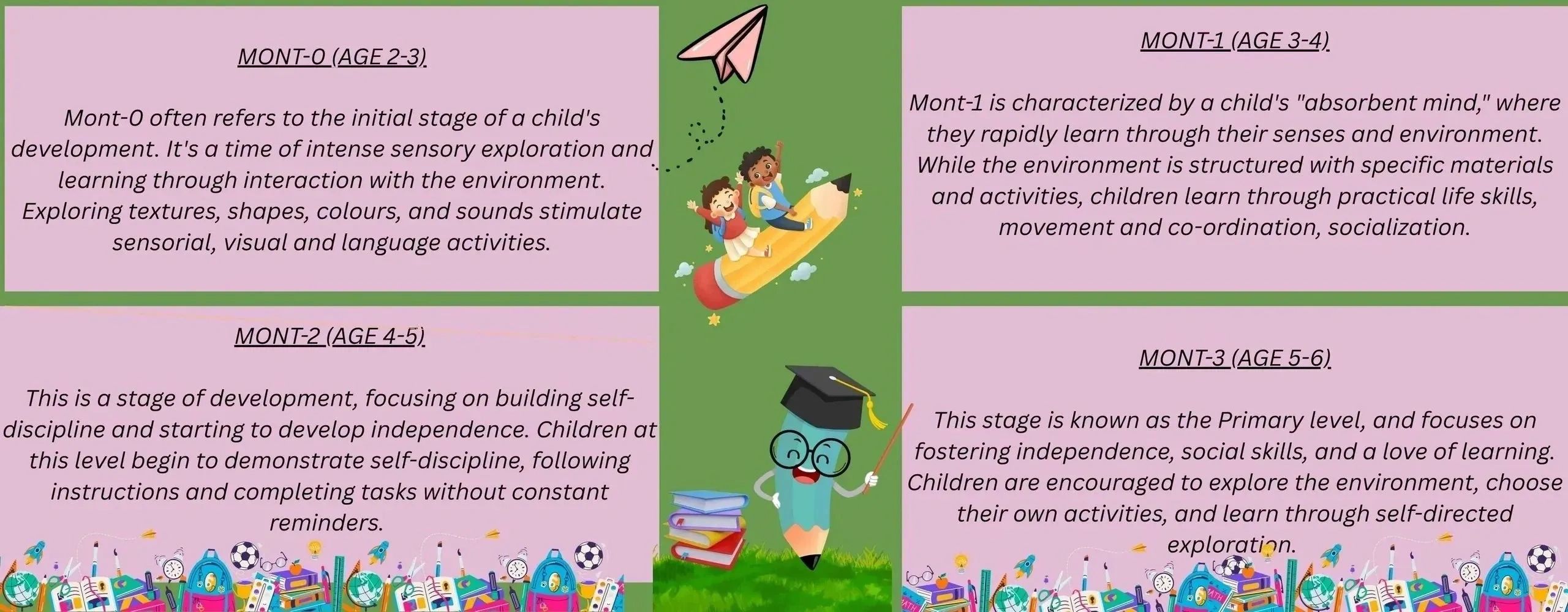Focus: Learning through play, exploration with Montessori material, and interaction.